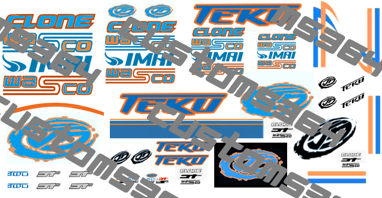 Approx. 5"x7" Waterslide decal sheet for making your own Teku Customs! Clearbacked sheet so should be used with light base colors. If using a dark colored car you need to trace white backing paper (of a particular decal you are applying) and apply first.